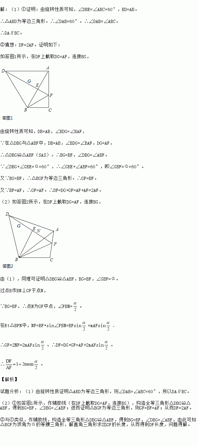 (2)如图2,若∠ABC<α,BF=mAF(m为常数),求