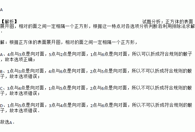 骰子是一种特别的数字立方体(见图),它符合规则:相对两面的点数之和总是7,下面四幅图中可以折成符合规则的骰子的是( )