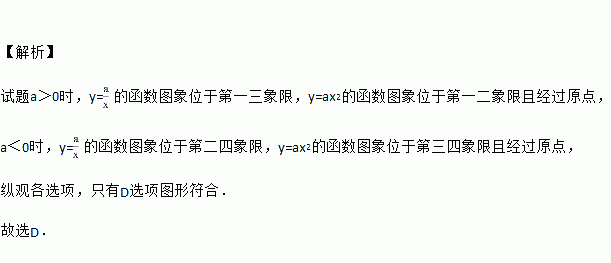 函数y=与y=ax2(a≠0)在同一平面直角坐标系中的图象可能是( )