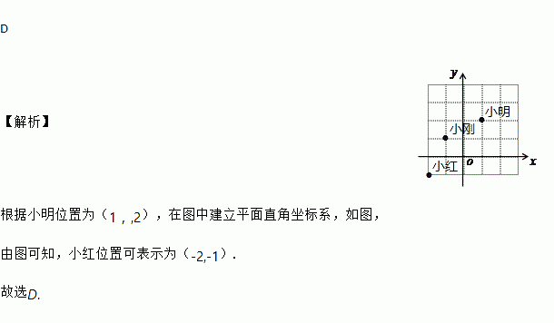 如图,是做课间操时,小明,小刚和小红三人的相对位置,如果用(1,2)表示小明的位置,(﹣1,1)表示小刚的位置,那么小红的位置可表示为( )