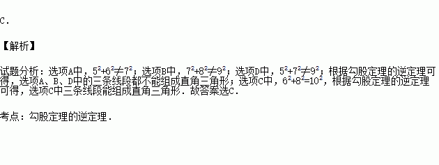 以下列长度(单位:cm)为边长的三角形是直角三角形的是( )