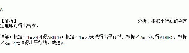 A. ∠1=∠4 B. ∠1=∠2 C. ∠2=∠3 D. ∠3=∠4