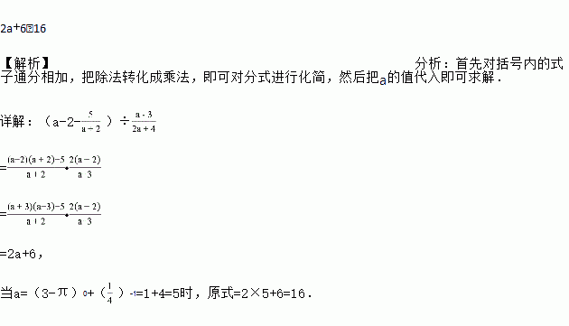 先化简,再求值:(a﹣2﹣)÷,其中a=(3﹣π)0+()﹣1.