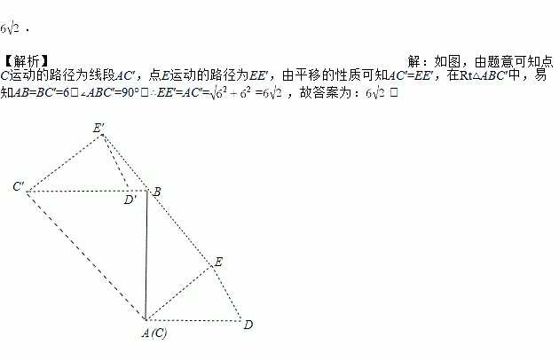 如图,在平面内,线段AB=6,P为线段AB上的动点,三角形纸片CDE的边CD所在的直线与线段AB垂直相交于点P,且满足PC=PA.若点P沿AB方向从点A运动到点B,则点E运动的路径长为______.