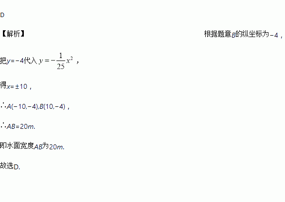 ,当水面离桥拱顶的高度DO是4m时,这时水面宽度AB为( )