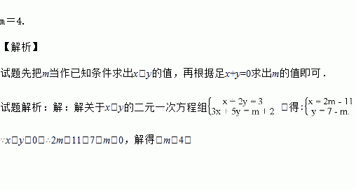 已知关于x,y的二元一次方程组的解满足x+y=0,求m的值.