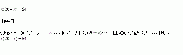 用一条长40cm的绳子围成一个面积为64cm2的矩形.设矩形的一边长为cm,则可列方程为_____________.