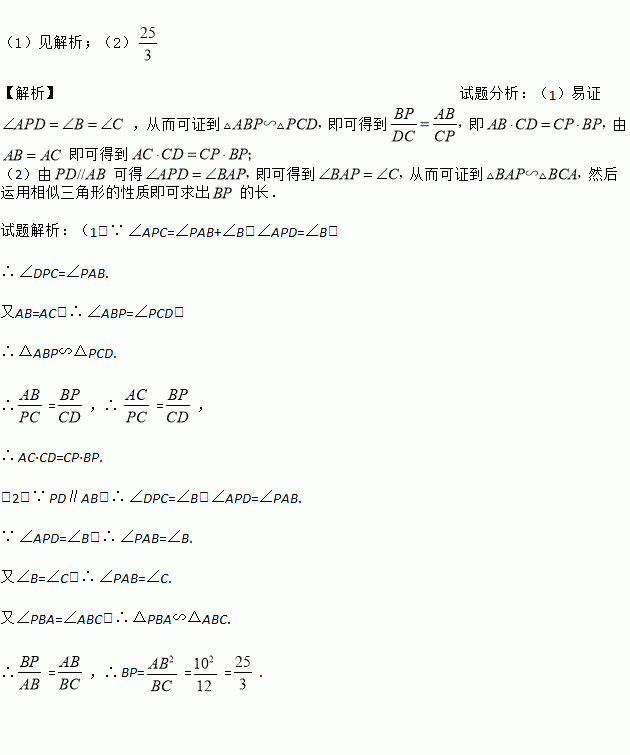如图,在△ABC中,AB=AC,点P,D分别是BC,AC边上的点,且∠APD=∠B.