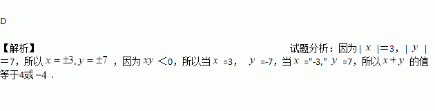 已知|x|=3,|y|=7,且 xy<0,则 x+y 的值等于( )