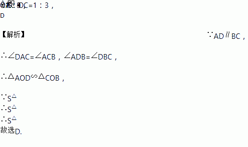 如图,梯形ABCD中,AD∥BC,对角线AC、BD相交于O点,若S△AOD:S△ACD:=1:4,则S△AOD:S△BOC=( )