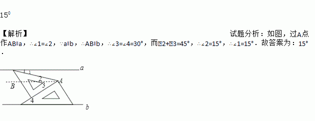如图,将一副三角板和一张对边平行的纸条按下列方式摆放,两个三角板的一直角边重合,含30°角的直角三角板的斜边与纸条一边重合,含45°角的三角板的一个顶点在纸条的另一边上,则∠1的度数是_____.