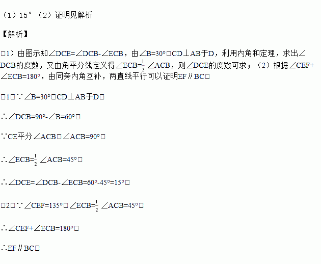 在直角△ABC中,∠ACB=90°,∠B=30°,CD⊥AB于D,CE是△ABC的角平分线.