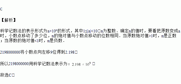C. 2.198×109元 D. 2.198×1010元