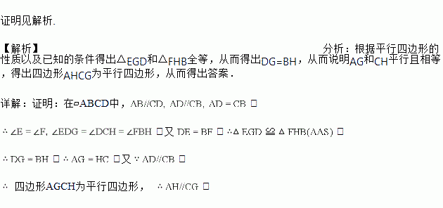 如图,E、F分别是□ABCD的边BC、AD上的点,且BE=DF