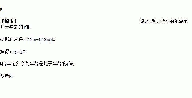 儿子今年12岁,父亲今年39岁,( )父亲的年龄是儿子的年龄的4倍.