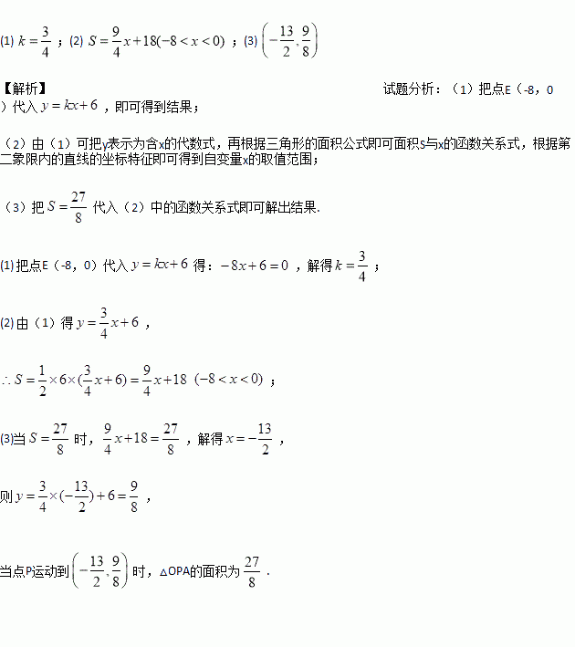 如图,直线y=kx+6与x轴、y轴分别交于点E、F,点E的坐标为,点A的坐标为(-6,0).