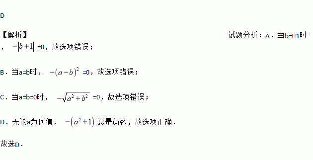 若, 是任意的两个实数,下列各式所表示的值中,一定是负数的是( ).