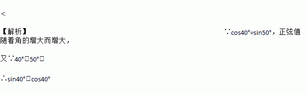 比较下列三角函数值的大小:sin40°______cos40°(选填“>”、“=”、“<”)