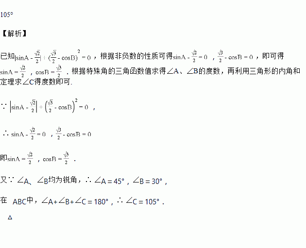在△ABC中,若,∠A、∠B都是锐角,则∠C的度数为_______.