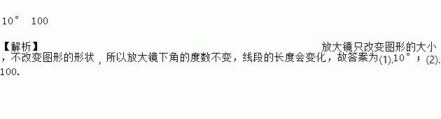 一个10°的角在10倍的放大镜下看,度数是____;一条10cm长的线段在10倍的放大镜下看,长度是____cm.