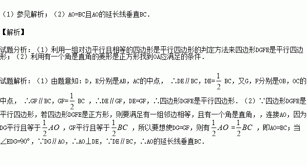 (2)若四边形DGFE是正方形,请直接给出OA应满足的条件是 .
