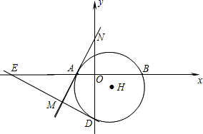 分析:(1)设过D的切线交x轴于E,设EA=x,即可表示出OE、EB的长;可分别用切割线定理及勾股定理得出DE2的表达式,联立两式即可求出x的值,也就得到了E点的坐标;进而可利用待定系数法求出直线DE的解析式;