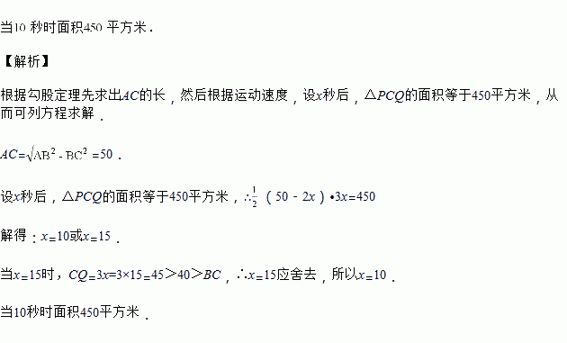 如图,在中,,点从点开始沿边向点以的速度匀速移动,同时另一点由点开始以的速度沿着匀速移动,几秒时,的面积等于?