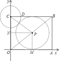 ②以点C为圆心,CD长为半径作⊙C、试问在对角线OB上是否存在点P,使得以点P为圆心的⊙P与⊙C、x轴都相切?若存在,求出点P的坐标;若不存在,请说明理由.