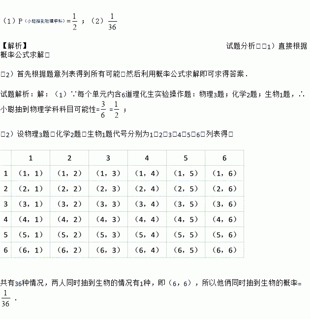 ΪÁË¿¼²éѧÉúµÄ×ÛºÏËØÖÊ£¬¾ÅÄê¼¶±ÏÒµÉúͳһ²Î¼ÓÀí»¯Éúʵ¼ù²Ù×÷¿ÆÄ¿¿¼ÊÔ¡£¸ù¾ÝÎÒÊÐʵ¼ÊÇé¿ö£¬ÊнÌÓý¾Ö¾ö¶¨£ºÀí»¯Éúʵ¼ù¿¼²é¿ÆÄ¿ÃüÖÆ24Ì⣬·Ö4¸öÊÔÌâµ¥Ôª£¬Ã¿¸öµ¥ÔªÄÚº¬6µÀÀí»¯ÉúʵÑé²Ù×÷Ìâ¡£¼´£ºÎïÀí3Ì⣻»¯Ñ§2Ì⣻ÉúÎï1Ì⡣С´ÏÓëСÃ÷ÊÇijʵÑéÖÐѧ¾ÅÄê¼¶µÄͬ°àͬѧ£¬ÔÚÈýÔ·ݾÙÐеÄÀí»¯Éú¿¼ÊÔÖУ¬ËûÃÇͬʱ³éµ½Í¬Ò»¸öÊÔÌâµ¥Ôª£¬ÇÒÿ¸öͬѧ¶¼ÊÇͬһ¸öÊÔÌâµ¥ÔªÀïËæ»ú³éȡһÌâ¡£