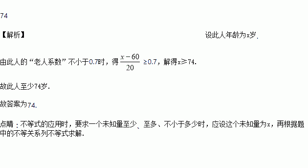 按照这样的规定,当某人的“老人系数”不小于0.7时,该人年龄至少为__________.