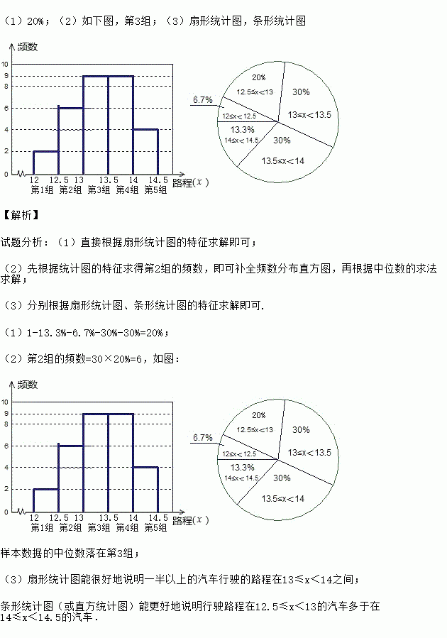(3)哪一个图能更好地说明一半以上的汽车行驶的路程在13≤x<14之间?哪一个图能更好地说明行驶路程在12.5≤x<13的汽车多于在14≤x<14.5的汽车?