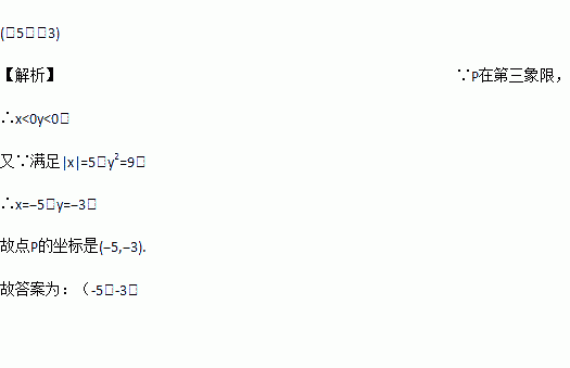 第三象限内的点P(x,y),满足, ,则点P的坐标是_________.