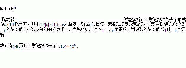 我国西部地区面积约为640万平方公里,640万用科学记数法表示为-________.
