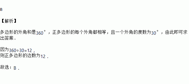 若多边形的一个外角是30°,则该正多边形的边数是( )