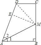 分析:作辅助线过点M作ME⊥AD,垂足为E,可以得出ME=MB,当点M为BC的中点时ME=MC.