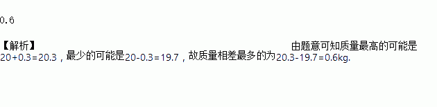 某粮店出售的三种品牌的面粉袋上分别标有质量为(20±0.1)kg ,(20±0.2)kg ,(20±0.3)kg的字样,从中任意拿出两袋,它们的质量最多相差________ kg