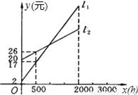 如图所示,l1和l2分别表示一种白炽灯和一种节能灯的费用y(元)与照明时间x(小时)的函数关系图象,假设两种灯的使用寿命都是2000小时,照明效果一样.(费用=灯的售价+电费)