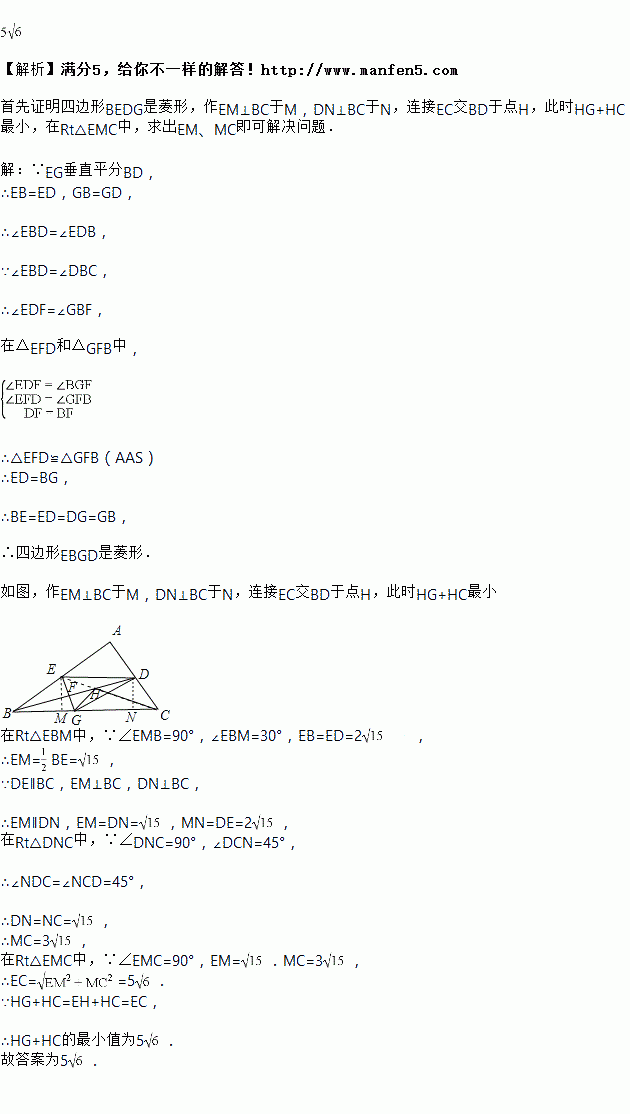 如图,BD是△ABC的角平分线,它的垂直平分线分别交AB,BD,BC于点E,F,G,若∠ABC=30°,∠C=45°,ED=