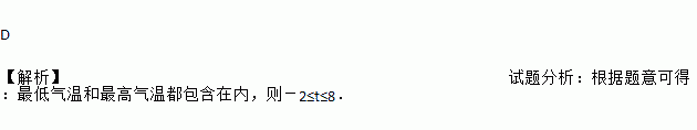 2015年2月1日宿迁市最高气温是8℃,最低气温是-2℃,则当天宿迁市气温变化范围t(℃)是( )