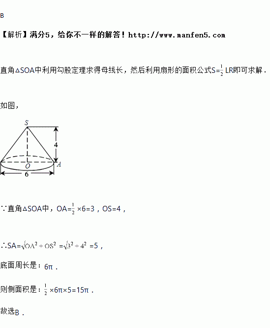 在数学课外小组活动中,小红同学用纸板制作了一个圆锥形漏斗模型.如图所示,它的底面直径为,高为.则这个圆锥漏斗的侧面积是( )