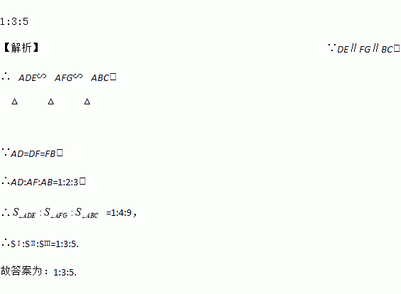 如图,AD=DF=FB,DE∥FG∥BC,则SⅠ:SⅡ:SⅢ=________.