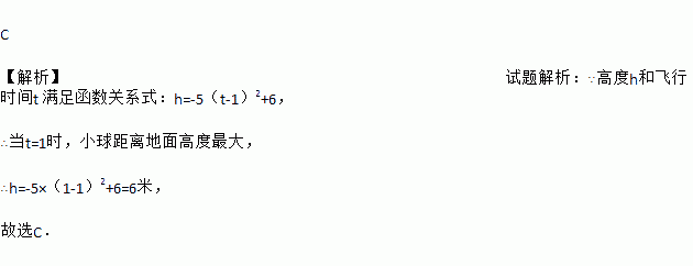 一小球被抛出后,距离地面的高度h(米)和飞行时间t(秒)满足下面函数关系式:h=-5(t-1)2+6,则小球距离地面的最大高度是( )
