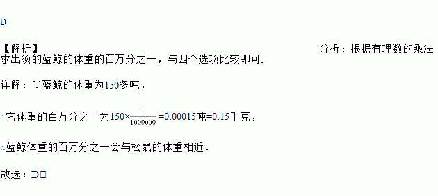 生活在海洋中的蓝鲸,又叫长须鲸或剃刀鲸,它的体重达到150多吨,它体重的百万分之一会与( )的体重相近.