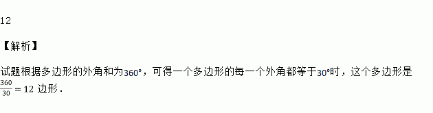 一个多边形的每一个外角为30°,那么这个多边形的边数为_____.