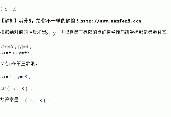 第三象限内的点p(x,y),满足,则点的坐标是_____________。
