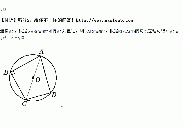 如图,点A,B,C,D都在⊙O上,∠ABC=90°,AD=3,CD=2,则⊙O的直径的长是________.