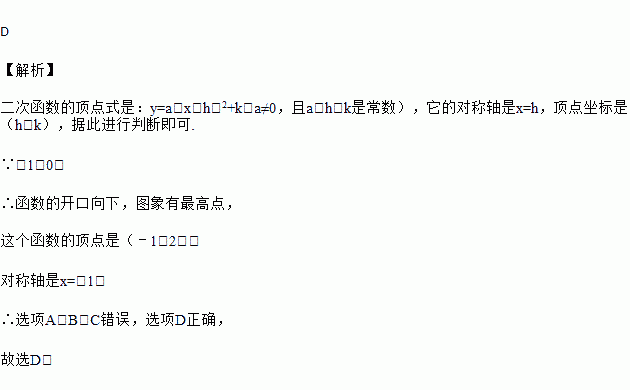 C. 图象有最低点 D. 图象的顶点坐标为(﹣1,2)
