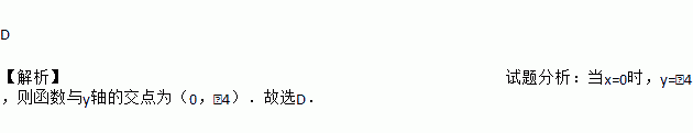 D 【解析】试题分析:当x=0时,y=﹣4,则函数与y轴的交点为(0,﹣4).故选D.