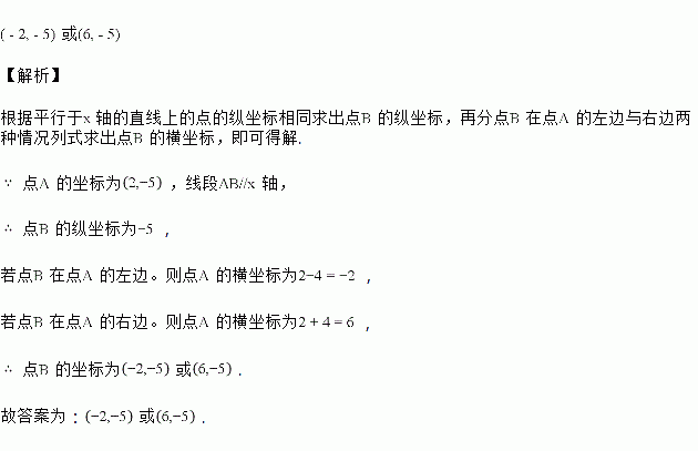 在平面直角坐标系中,点A的坐标为若线段轴,且AB的长为4,则点B的坐标为______.