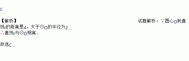 已知⊙O的半径为2,圆心O到直线l的距离是4,则⊙O与直线l的关系是( )